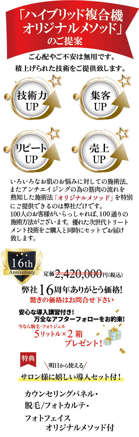少ない投資で大きなリターンを狙える、これからのエステサロンにぴったりの1台です。